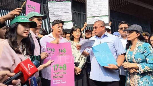 Aksi-aksi kemarin memang mengarah ke DPR. Rakyat marah karena tunjangan anggota DPR naik saat ekonomi lesu, mencari pekerjaan sulit, dan daya beli menurun. Tapi tuntutan 17+8 itu juga diarahkan ke presiden. Namun, apa yang dilakukan Prabowo Subianto? Menonton parade militer di Tiongkok dan baru merespons tuntutan 17+8 belakangan.