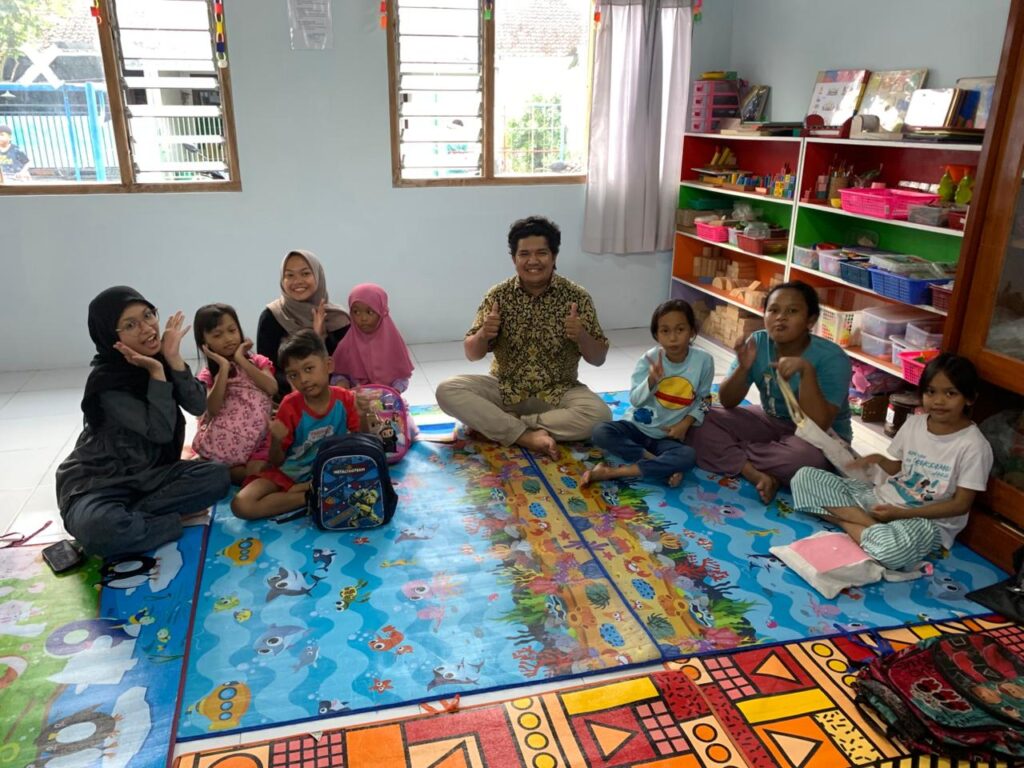 Kamis sore itu, anak-anak terlihat riang gembira bermain di setiap sudut halaman. Ada yang sibuk menyusun puzzle, ada yang berayun...